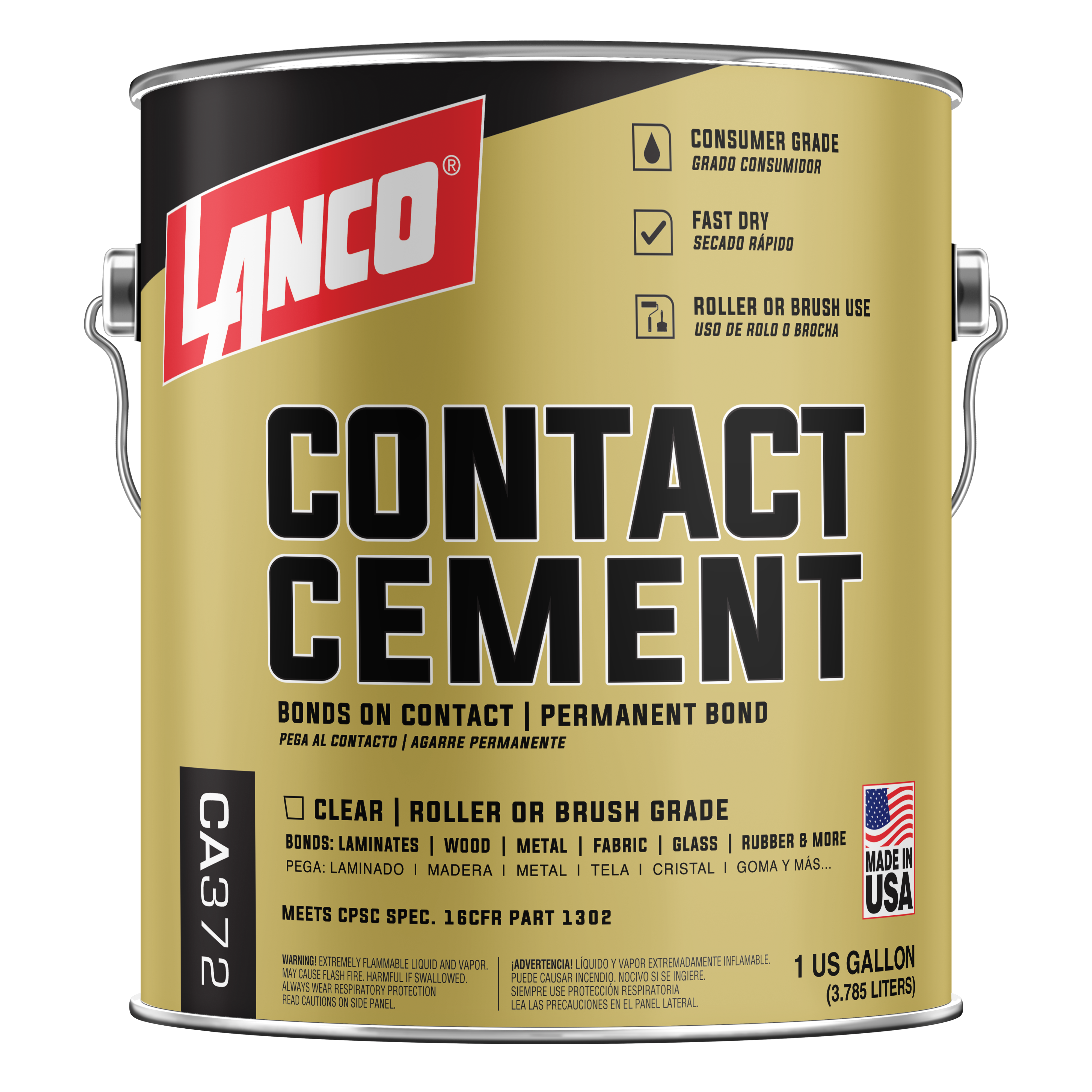 Cemento Contacto Grado Brocha es un pegamento de secado rápido, de aplicación con brocha, formulado con goma de cloropreno a base de solvente para laminados decorativos. Es de sustancia caucho en un disolvente volátil que resiste agua, calor, aceite, grasa y la mayoría de productos químicos. Ofrece unión permanente, permite trabajarlo hasta por 30 minutos y está diseñado para uso industrial y comercial en la unión de laminados decorativos, topes, madera, contrachapado, formica y otros materiales similares o diferentes. Se adhiere a superficies lisas y porosas como madera, contrachapado, cuero, goma sintética y laminados decorativos. 19% Sólidos.