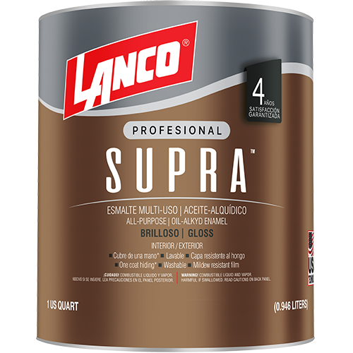 Supra Esmalte™ es un esmalte alquídico de excelente calidad y alto rendimiento, diseñado para proporcionar un acabado profesional y duradero. Ideal para superficies interiores y exteriores que requieren protección y belleza.