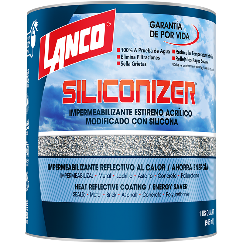 Siliconizer™ es un impermeabilizante elastomérico de grado profesional, elaborado con acrílico modificado con silicón, diseñado para proteger techos contra filtraciones, humedad y condiciones climáticas exigentes. Su fórmula altamente reflectiva ayuda a reducir la temperatura de la superficie, mientras su elongación de hasta 575% le permite acompañar el movimiento del sustrato sin agrietarse. Reforzado con fibra para mayor resistencia, forma una capa firmemente adherida que soporta agua empozada y ofrece protección duradera por años.